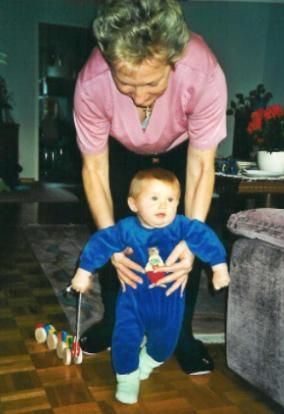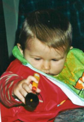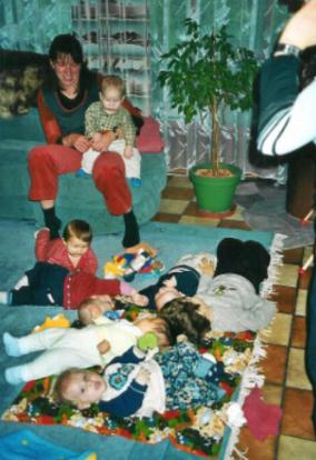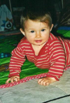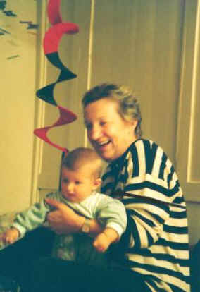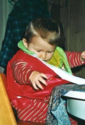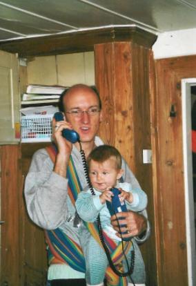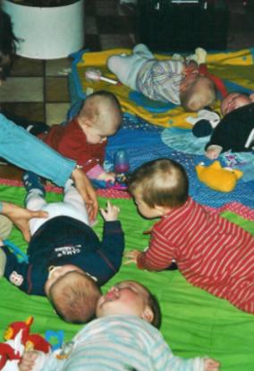 hier! Auf dem Arm, im Tuch, mit dem wertvollen Spielzeug und vor